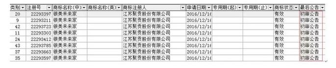 2016年12月,聚贡公司委托某商标事务所在20类、9类、42类等8个类别注册“银美未来家”的商标。经查询,发现在此8个类别里,在先均有含“银美”、“未来家”等字样的商标存在。从普遍的经验来看,这种状况下的商标驳回几率较高。